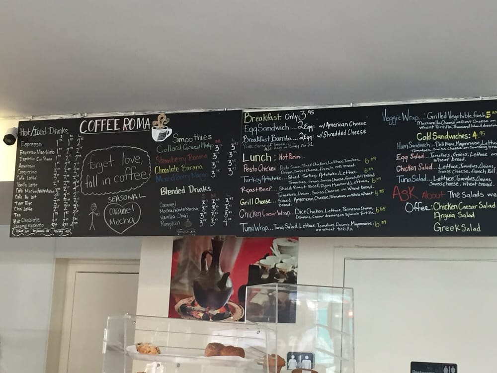 At Coffee Roma we serve the finest Italian Roast Coffee, Umbria it is truly a special roast. We pride ourselves in making each coffee drink from scratch, you surely will taste the difference. Our food is Fresh and made daily, Pastries are fresh and local as well as our amazing bread choices that are baked daily here in Oakland and delivered daily. Fresh made salads daily as well, Organic Juice & Smoothies are among the favorites.